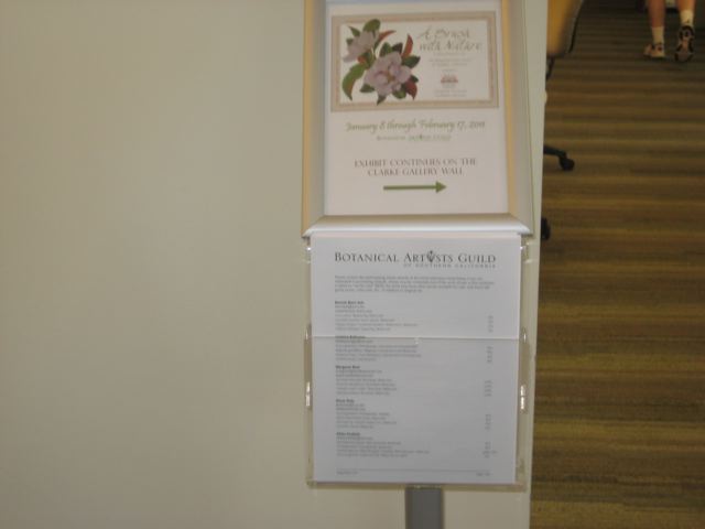 A Brush with Nature, an exhibit of botanical art by The Botanical Artists Guild of Southern California (BAGSC) and presented by Chapman University Leatherby Libraries has been hung and is now open for viewing. Twenty-three BAGSC artists are exhibiting 75 works of art in watercolor, colored pencil, ink and graphite. (See list at the end of this article for participating artists.)