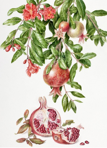 An article in the April 2011 issue of American Art Collector features the upcoming exhibition, Green Currency: Plants in the Economy to be held at the New York Botanical Garden April 30 – July 31, with images of Akiko’s Pomegranate, Punica granatum; along with milly acharya’s Foxglove, Digitalis purpurea/D. lutea, and Karen Kluglein’s Corn, Zea mays.