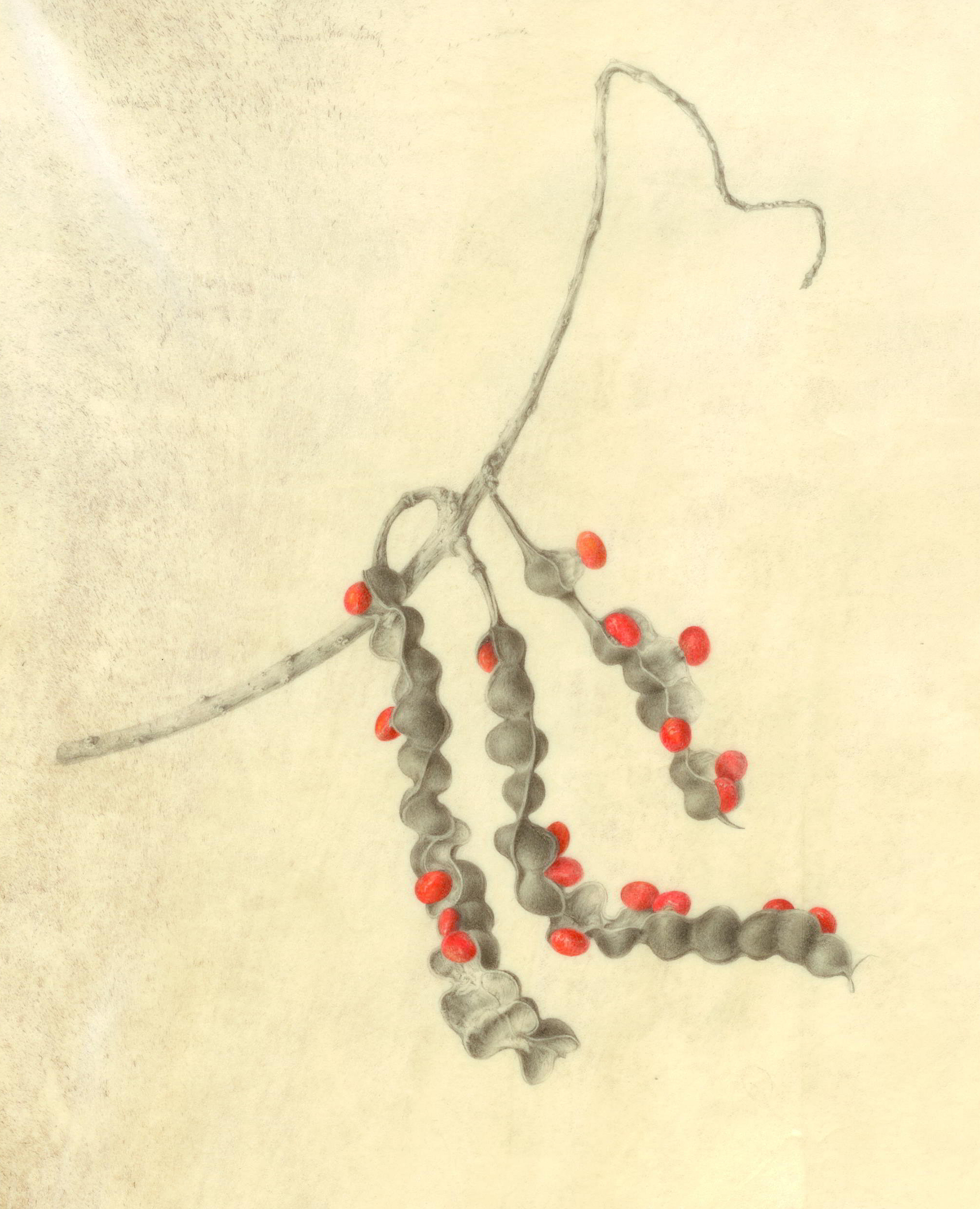 Erythrina sp., Coral Tree Seeds, graphite and watercolor on veilum, © 2010, Deborah Shaw, all rights reserved.