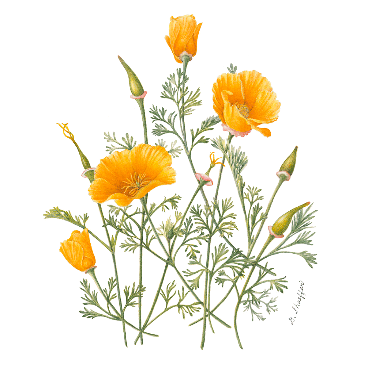 California Poppy, watercolor by Gilly Shaeffer, © 2016, all rights reserved.