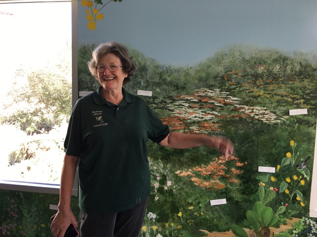 Estelle discussing the challenges of painting the mural. Photo by Jude Wiesenfeld, © 2018.