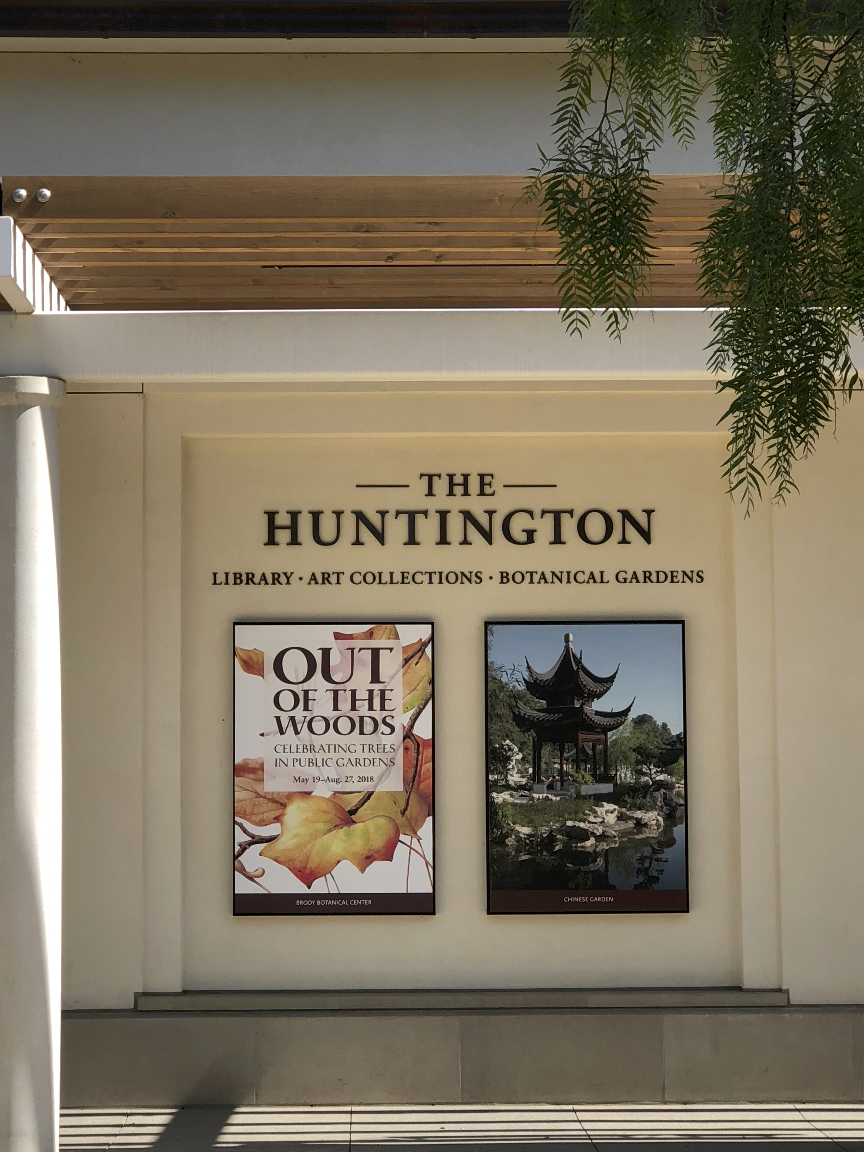 Signage at the front entrance of The Huntington Library, Art Collections, and Botanical Gardens.