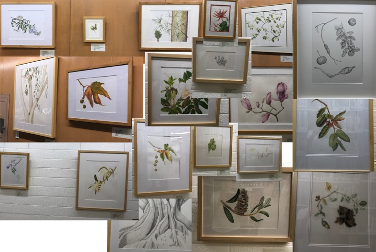 A collage of artwork in the exhibition in The Arboretum Library. Photo collage by Janice Sharp, © 2017.