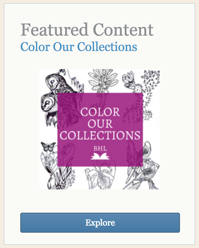 The Bioheritage Diversity Library (see the previous post in this BAGSC News blog) is one of the participants. Their coloring pages can be downloaded from either the Color Our Collections website, or the Biodiversity Heritage Library website.