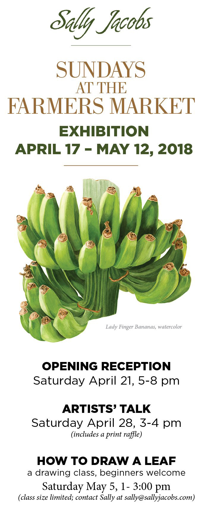 Drawing Class: “How to Draw a Leaf,” Saturday, May 5, 1 – 3:00 pm. Beginners welcome. Class size limited; contact Sally to register.