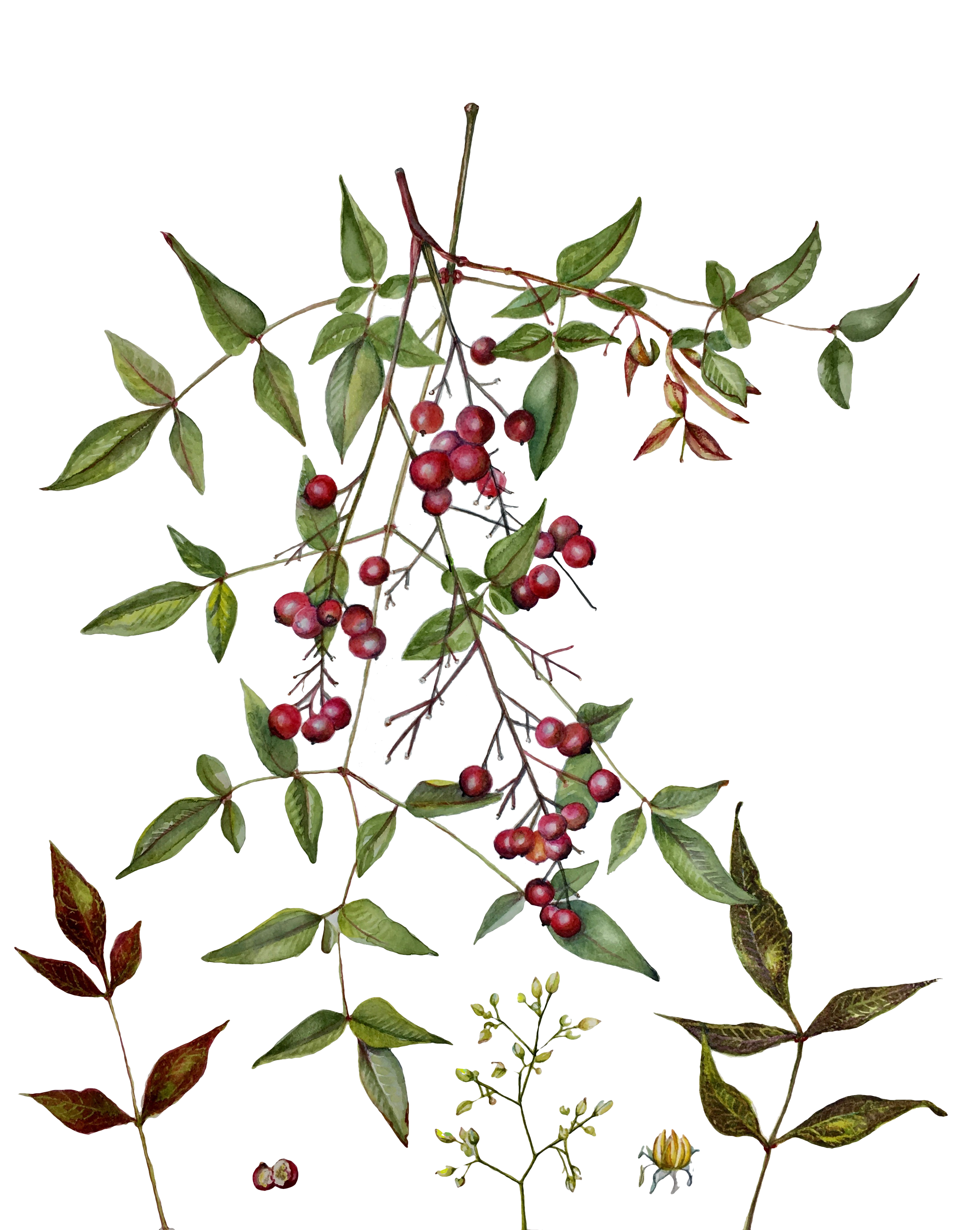 Nandina domestica, Sacred Bamboo, by Jude Wiesenfeld. Watercolor on 140 lb. Arches, 18.5″ X 15”, © 2017.