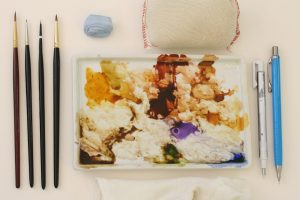 “Watching Robert using a scalpel to release bits of dried paint from the paper surface.”