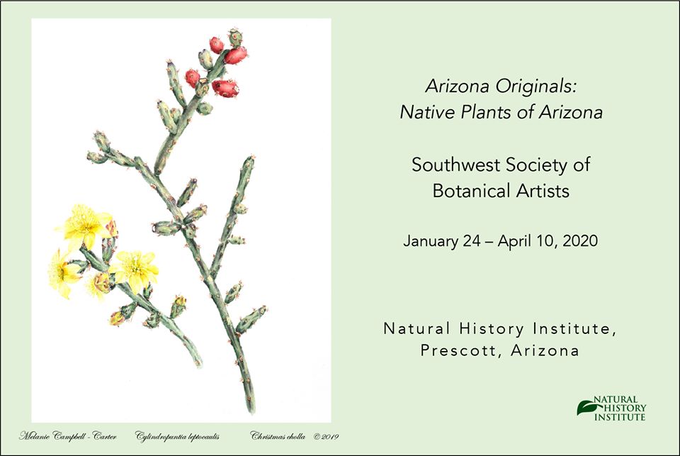 Melanie Campbell-Carter will give a botanical talk at the Natural History Institute on Thursday, February 6th at 7 pm (Mountain Standard Time, MST). Entitled Passion, Devotion, Intimacy: Art and Natural History, Melanie will explore the strong connection between art and natural history. She will also share some of the stories behind Arizona Originals: Native Plants of Arizona, an exhibition by the Southwest Society of Botanical Artists on display from from January 24 – April 10, 2020 in the gallery at The Natural History Institute.