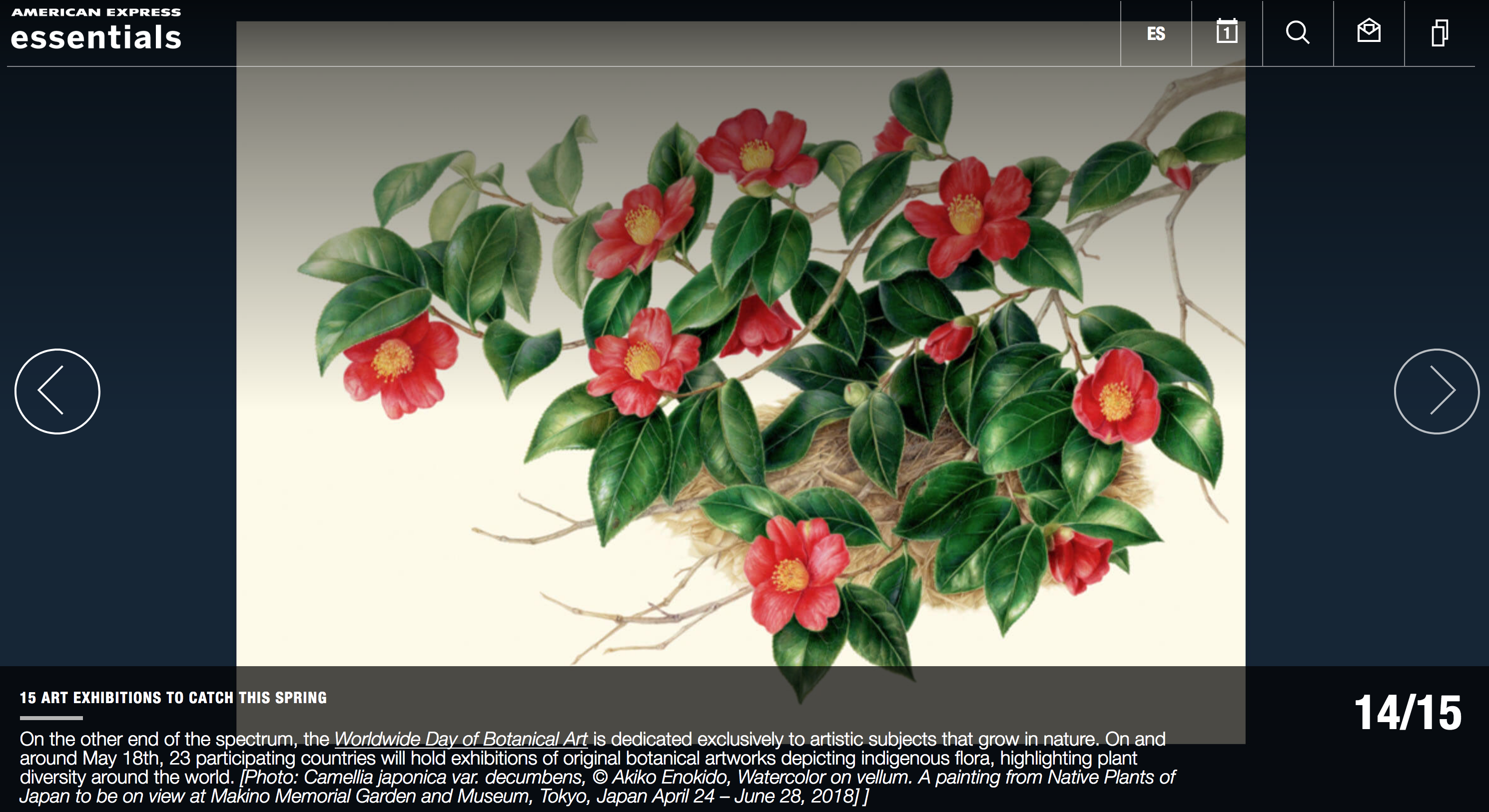 Botanical Art Worldwide is listed on the American Express Essentials Culture site as one of 15 Art Exhibitions to see this spring at this link: https://www.amexessentials.com/top-art-exhibitions-events-spring-2018/