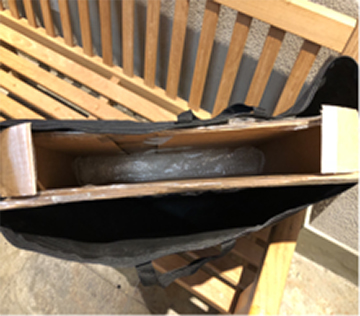 Art in the portfolio can be protected with Foam-Core or cardboard. Plexiglass is notorious for scratching easily. Foam-Core or cardboard across the front that does not touch the surface of the plexi will help protect it. Please see the sample photos of Mitsuko Schultz‘s portfolio to the left which contains an interior box made of cardboard to support and protect the framed artwork.