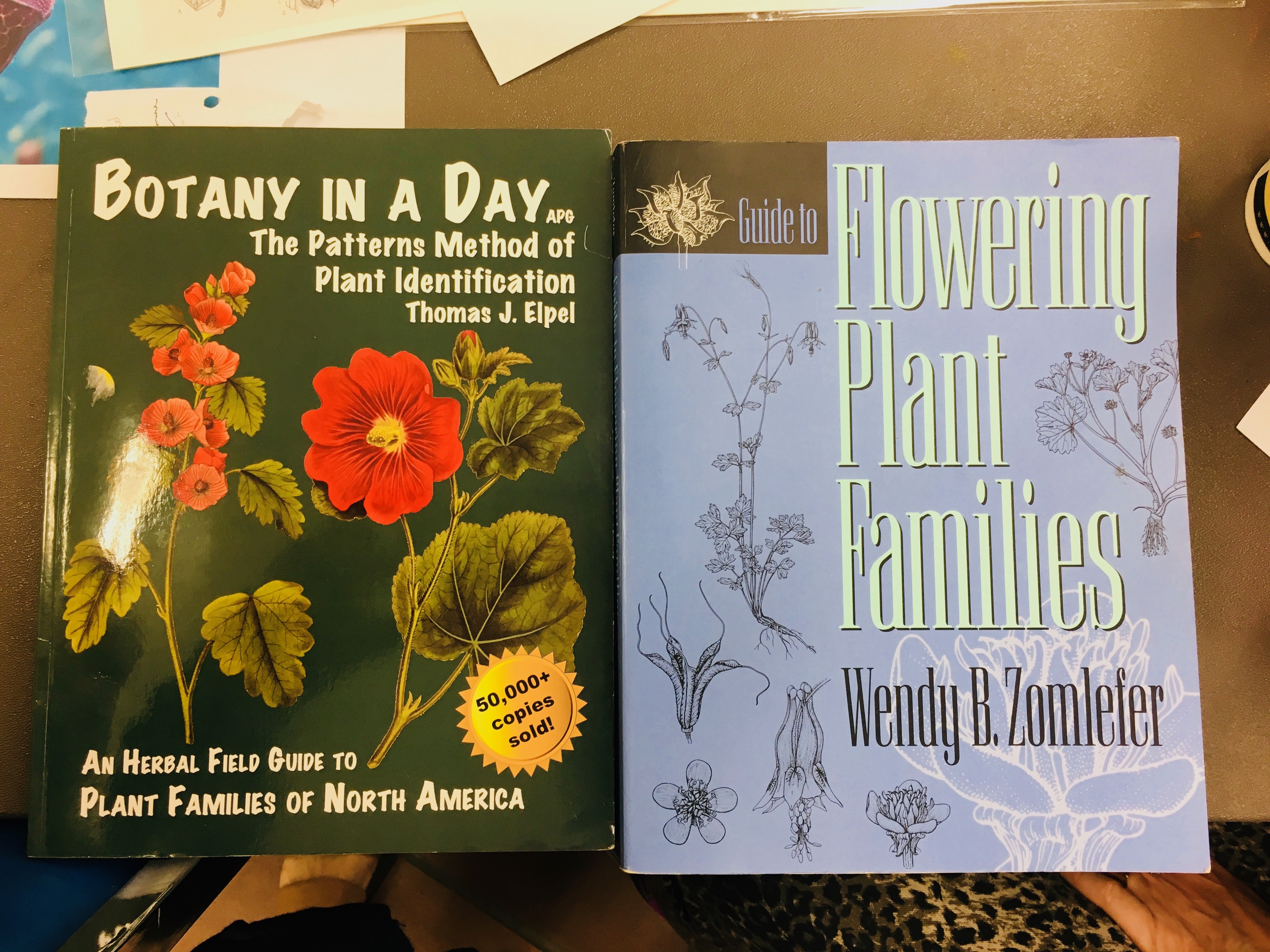Two books recommended by Lesley Randall: “Botany in a Day: The Patterns Method of Plant Identification” by Thomas J. Elpel, ISBN-13: 978-1892784353, ISBN-10: 1892784351; and, “Guide to Flowering Plant Families” by Wendy B. Zomlefer, ISBN13: 9780807844700, ISBN-10: 0807844705. Photo by Jude Wiesenfeld, © 2018.