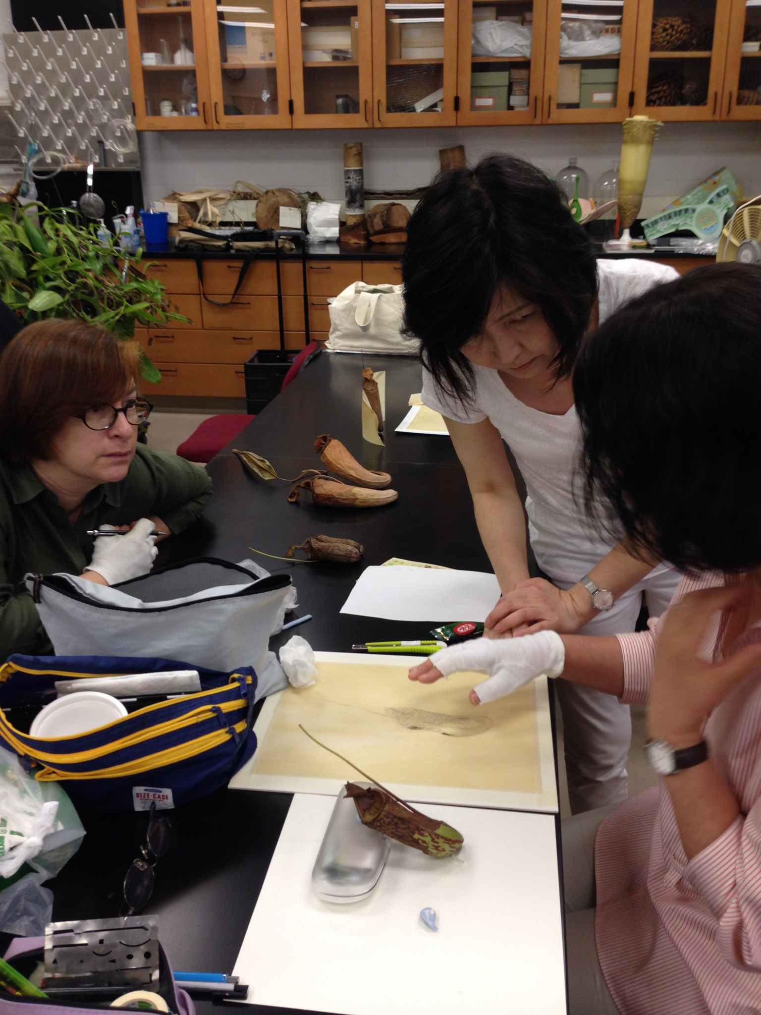 Nepenthes! The very epitome of Weird, Wild, and Wonderful was the subject of a three-day pre-symposium workshop led by Mieko Ishikawa, a featured artist in the Weird, Wild & Wonderful exhibit currently on view at the Brody Botanical Center at The Huntington and also a Keynote Speaker at our symposium.