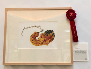 During the opening reception for the adjunct exhibition by the Botanical Artists Guild of Southern California (BAGSC), friends, family and the public were able to vote for their personal favorites. The votes are in and the ribbons have been hung for the last three days of the show, Friday, 7 August – Sunday, 9 August.