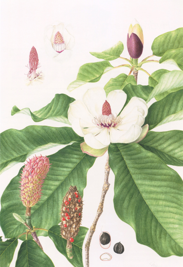 You may have the same question I have: how to portray something huge like a whole tree, or a plant like Magnolia obovata, which has leaves that grow up to 45 cm long and 25 cm wide? Two fantastic artists had the answers for me in this show.
