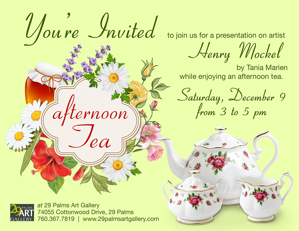 Everyone is invited for an afternoon of tea and botanical art at the 29 Palms Art Gallery this coming Saturday. The event is free. Donations to the non-profit gallery are suggested.