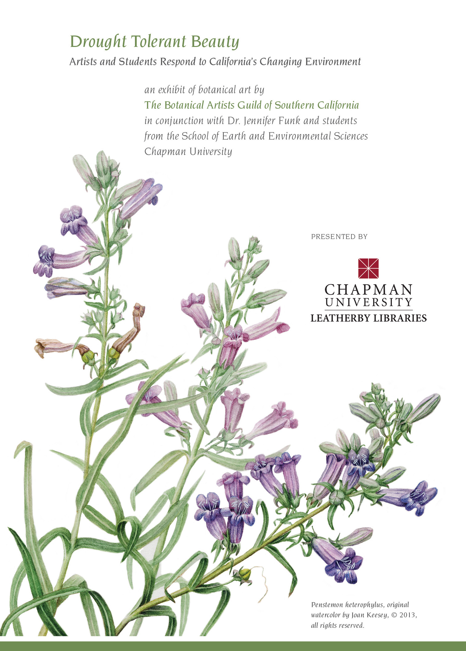 Front side of Announcement/Invitation postcard for the “Drought Tolerant Beauty” exhibition at Chapman University.
