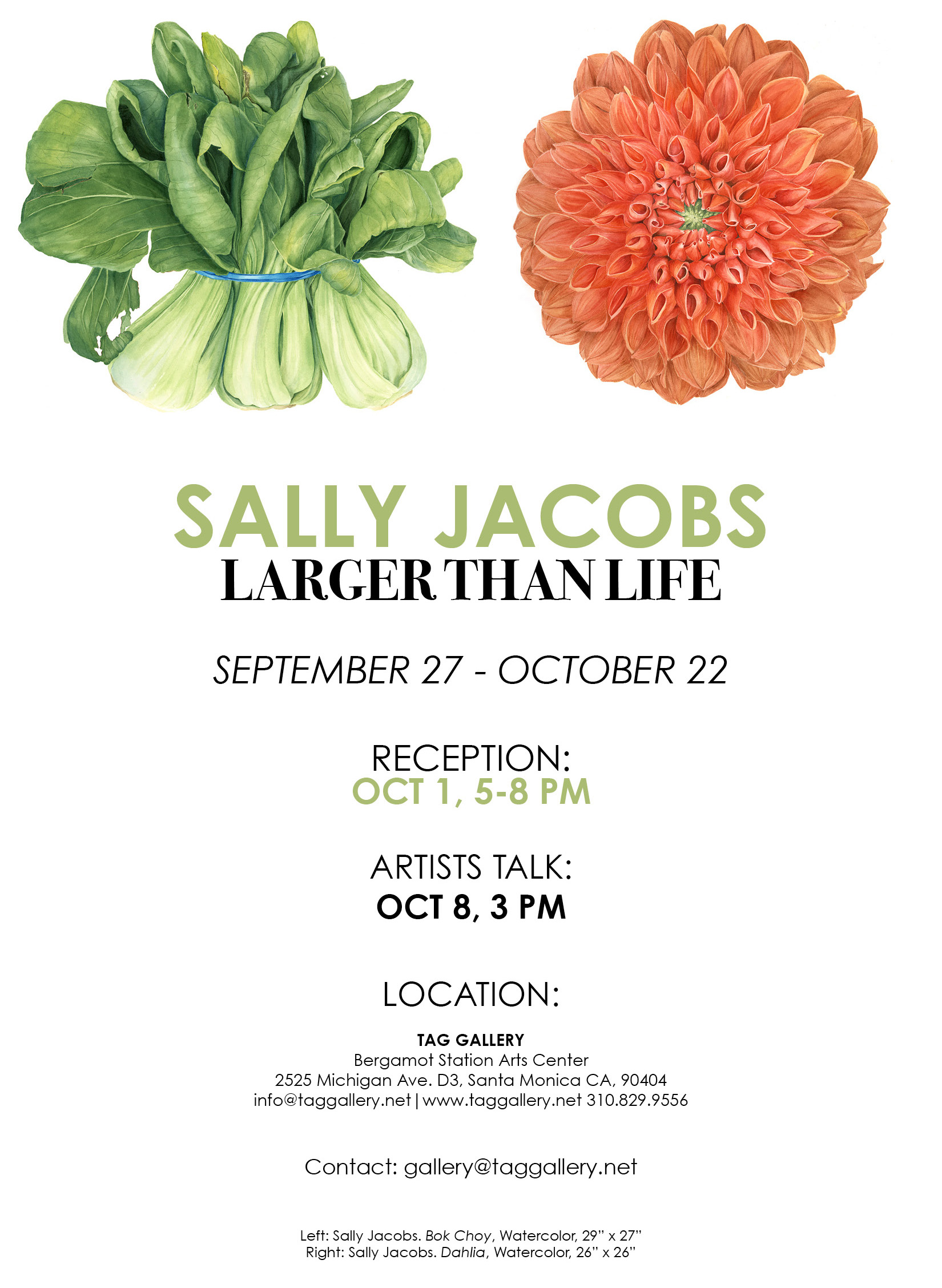 Sally Jacobs will be giving an “Artists’ Panel” for her exhibition, Larger than Life this Saturday, October 8, 2016 at 3:00 pm at the TAG Gallery in Bergamot Station Arts Center. It’s a great way to see the show and hear about her approach, technique, and more.
