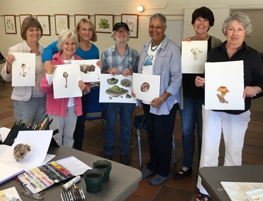 This October 19 – 21, 2016, Sasha came to teach a workshop about painting mushrooms for BAGSC artists. Held at the Los Angeles County Arboretum and Botanic Garden in Arcadia, California, Sasha brought with him a wealth of knowledge on his speciality. His technique is largely wet on wet. He reiterated often that we should get ready to put the paint on the paper, then STOP and think about where we will place the paint before proceeding.