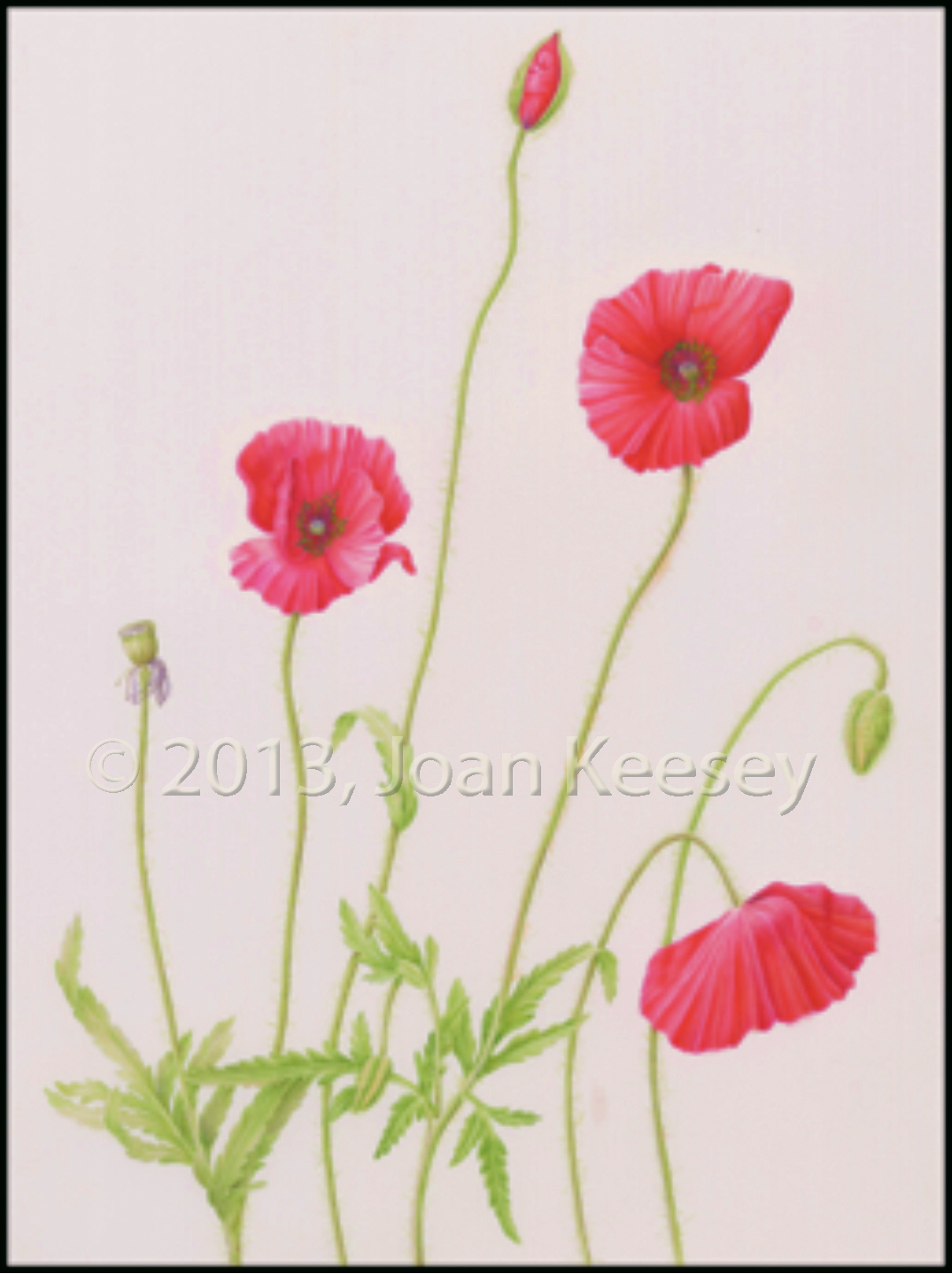 Contact Leslie with information regarding which wild flowers you would like to exhibit, and how many paintings you might have for this show as soon as possible.
