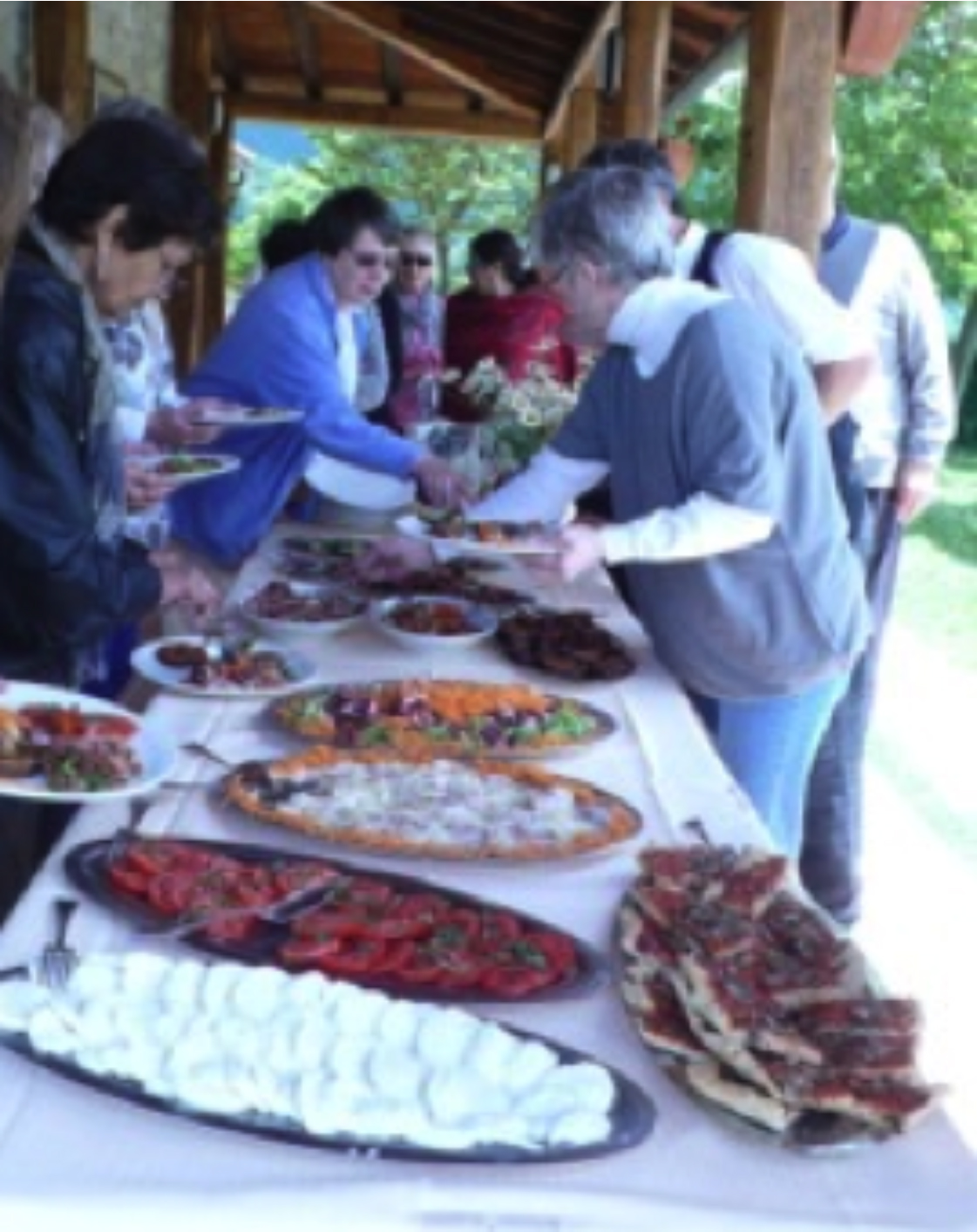 We were a group of 13 including Elaine: four Americans including Deborah Friedman and myself from BAGSC, six women from Britain, three ladies from Finland, Japan, and Trinidad respectively. We stayed in a lovely stone building in which the studio was also located. Il Collaccio provided all of our meals. They were very good, especially the lunches which were interesting, varied and served outside if the weather permitted.